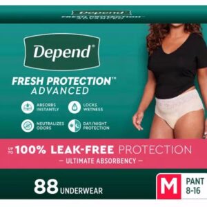 Depend Fresh Protection Advanced Incontinence Underwear for Women, Ultimate Absorbency-Medium 88 ct
